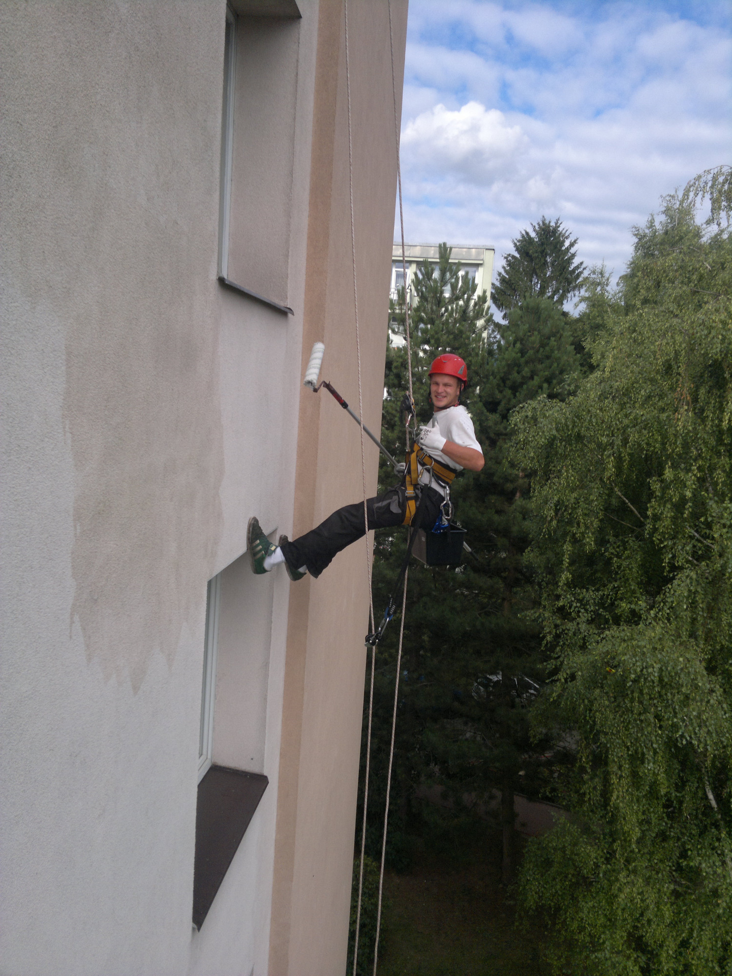 Dobrý den, jmenuji se Patrik Šindelář, výškovým pracím se věnuji od roku 2014. Pravidelně se účastníme různých školení, kurzů a přednášek na toto téma. Specializujeme se na rizikové kácení stromů, nátěr fasád, střech a dřevěných konstrukcí, mytí a čištění střech, montáž bannerů a ochran proti ptactvu. Tyto služby poskytujeme rychle, kvalitně, efektivně a s vysokým důrazem na bezpečnost.